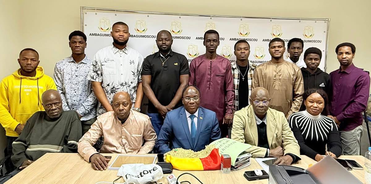 Ce vendredi, dans les locaux de l’Ambassade de la République de Guinée à Moscou, s’est tenue la cérémonie solennelle de passation de service entre les bureaux sortant et entrant de l’Association des Étudiants et Doctorants Guinéens en Fédération de Russie. À cette occasion, le Président sortant, M. Sory Condé, a officiellement transmis le flambeau à M. Antoine Lamah. La cérémonie a été rehaussée par les mots de félicitations de Monsieur l’Ambassadeur Son Excellence Niankoye HABA à l’endroit du bureau sortant, saluant le travail accompli, ainsi que par ses sages exhortations adressées au bureau entrant, les invitant à œuvrer avec engagement, responsabilité et esprit de service pour le rayonnement de la communauté estudiantine guinéenne.