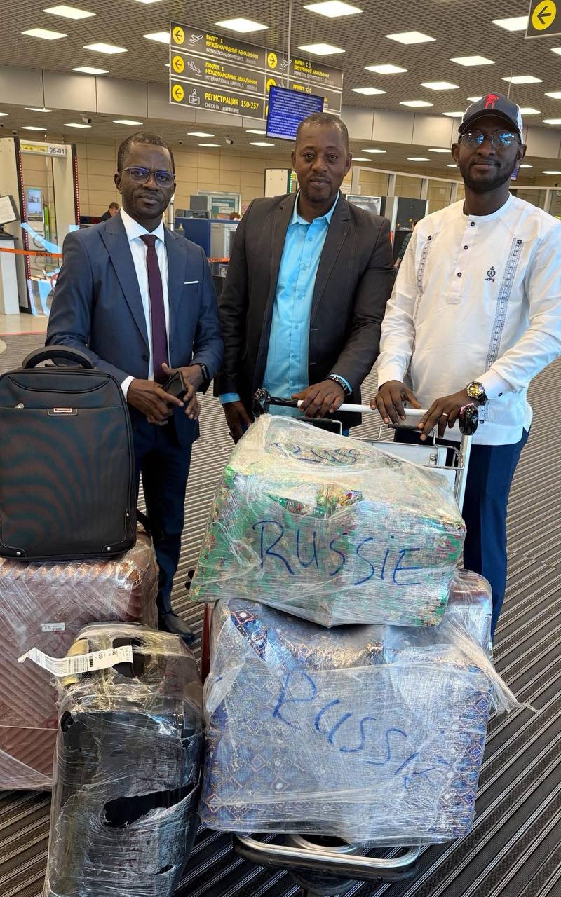 Les équipements sont acheminés par Monsieur Mohamed Lamine Camarade émissaire du Ministère des Affaires Étrangères de l’Intégration Africaine et des Guinéens Établis à l’Etranger. Des kits réceptionnés à l’aéroport de Moscou par le Premier Secrétaire chargé des Affaires Politiques M. Bakary Blond Bérété et le Premier Secrétaire chargé de la Communication M. Faya Bernard TONGUINO sur instruction de Son Excellence Monsieur l’Ambassadeur de la République de Guinée à Moscou.